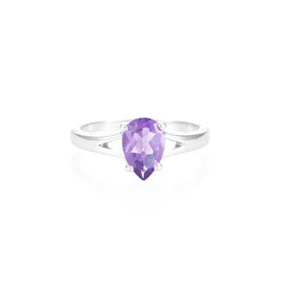 Stříbrný přívěsek se solitérním ametystem o velkorysé velikosti 10×14 mm. Kámen je bezpečně uchycen čtyřmi krapnami, což zvýrazňuje jeho charakteristickou barvu a lesk. Minimalistický design bez zbytečného zdobení umožňuje vyniknout kráse samotného kamene.