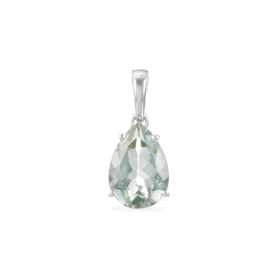 Stříbrný přívěsek s kulatým bílým topazem v lunetovém osazení pro bezpečné uchycení kamene. Jednoduchý a klasický design.